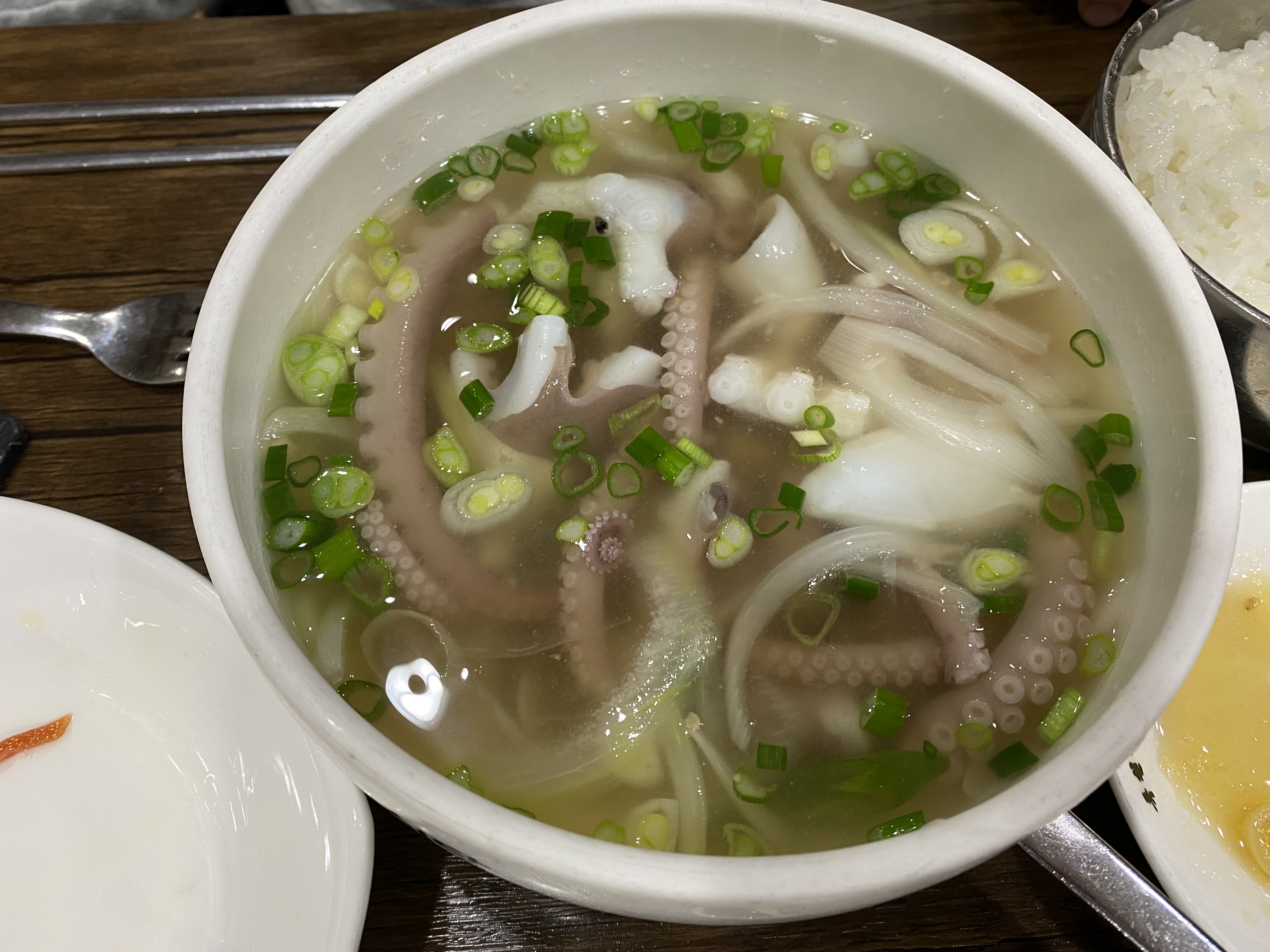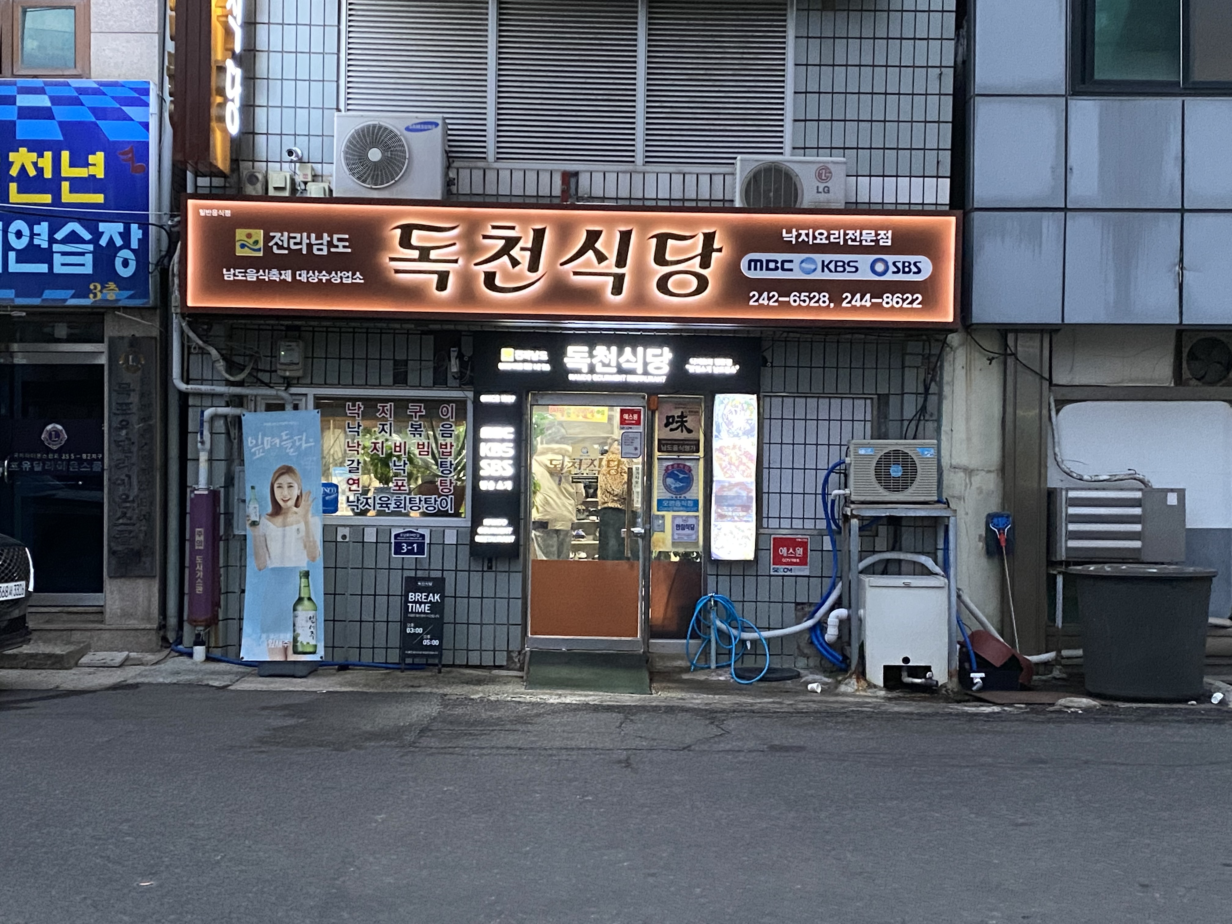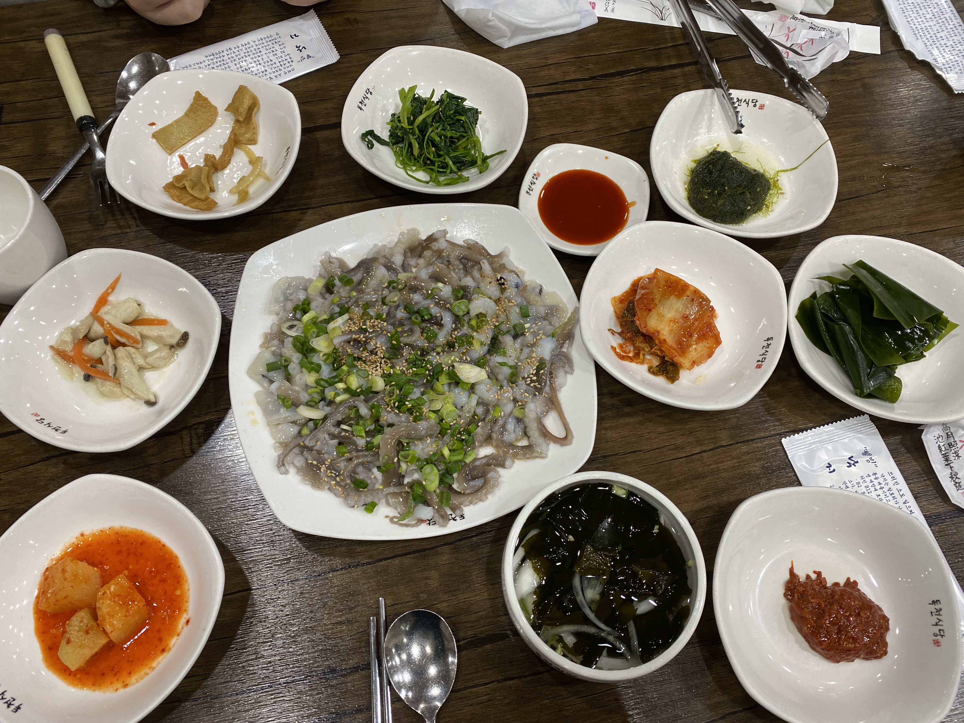 목포 여행 중 맛집 독천식당에서 산낙지, 낙지비빔밥, 연포탕을 먹었다. 여기는 넓은 전용주차장이 있을 정도로 손님이 많은 집이고 맛집이다. 안스럽게도 목포의 많은 집들이 코로나의 여파겠지만 문을 닫거나 장사가 잘 안되는것 같았는데 여기는 자리가 없어서 대기하는 사람들도 있었다 산낙지 못먹는다던 마눌님과 애들은 무슨 게눈감추듯 폭풍 흡입을 하고 있었다. 공기밥에 그냥 갈치속젓만 얹어 먹어도 맛있었다. 비싸긴 했지만 그래도 맛있게 먹은데 만족한다.