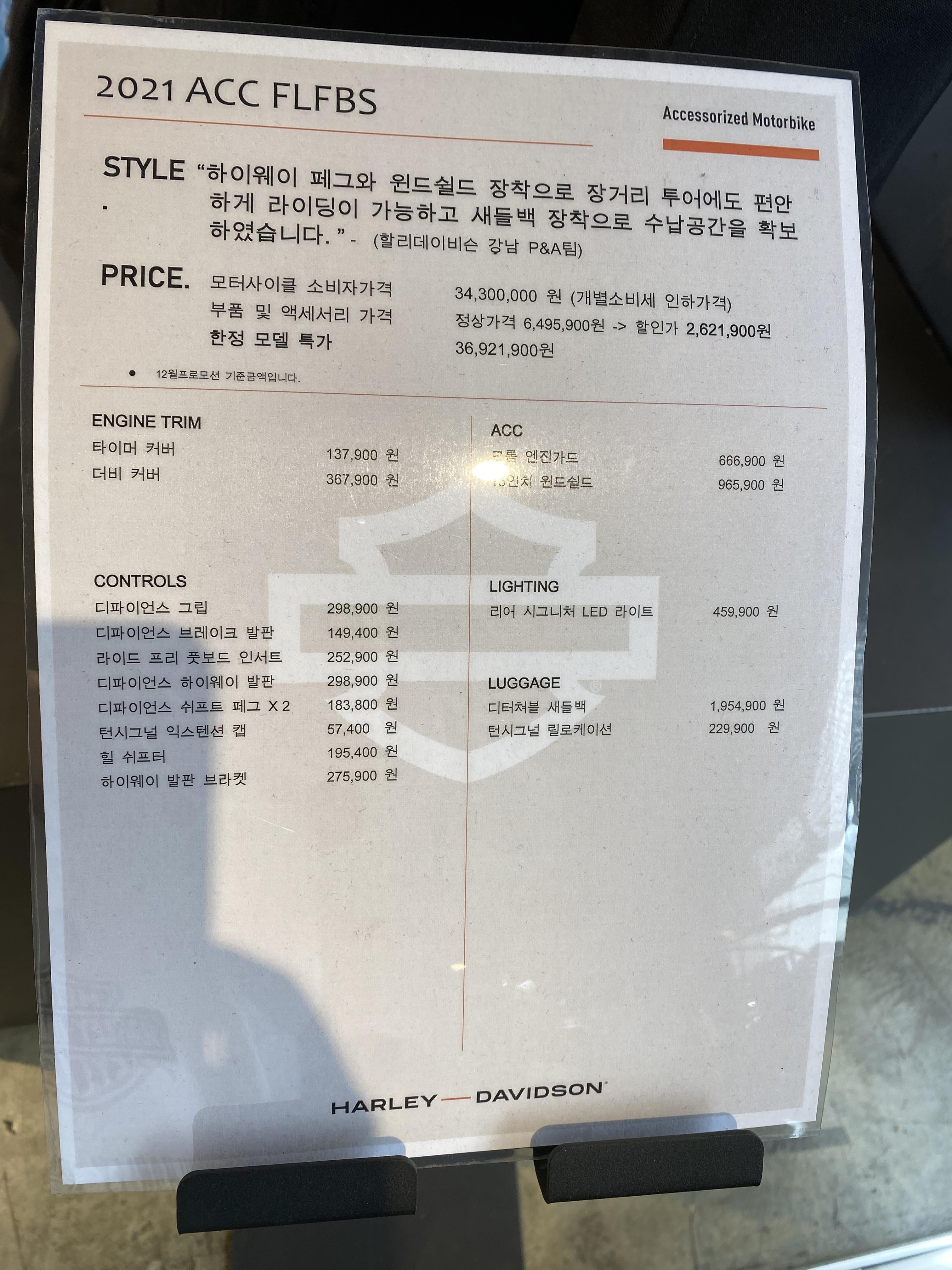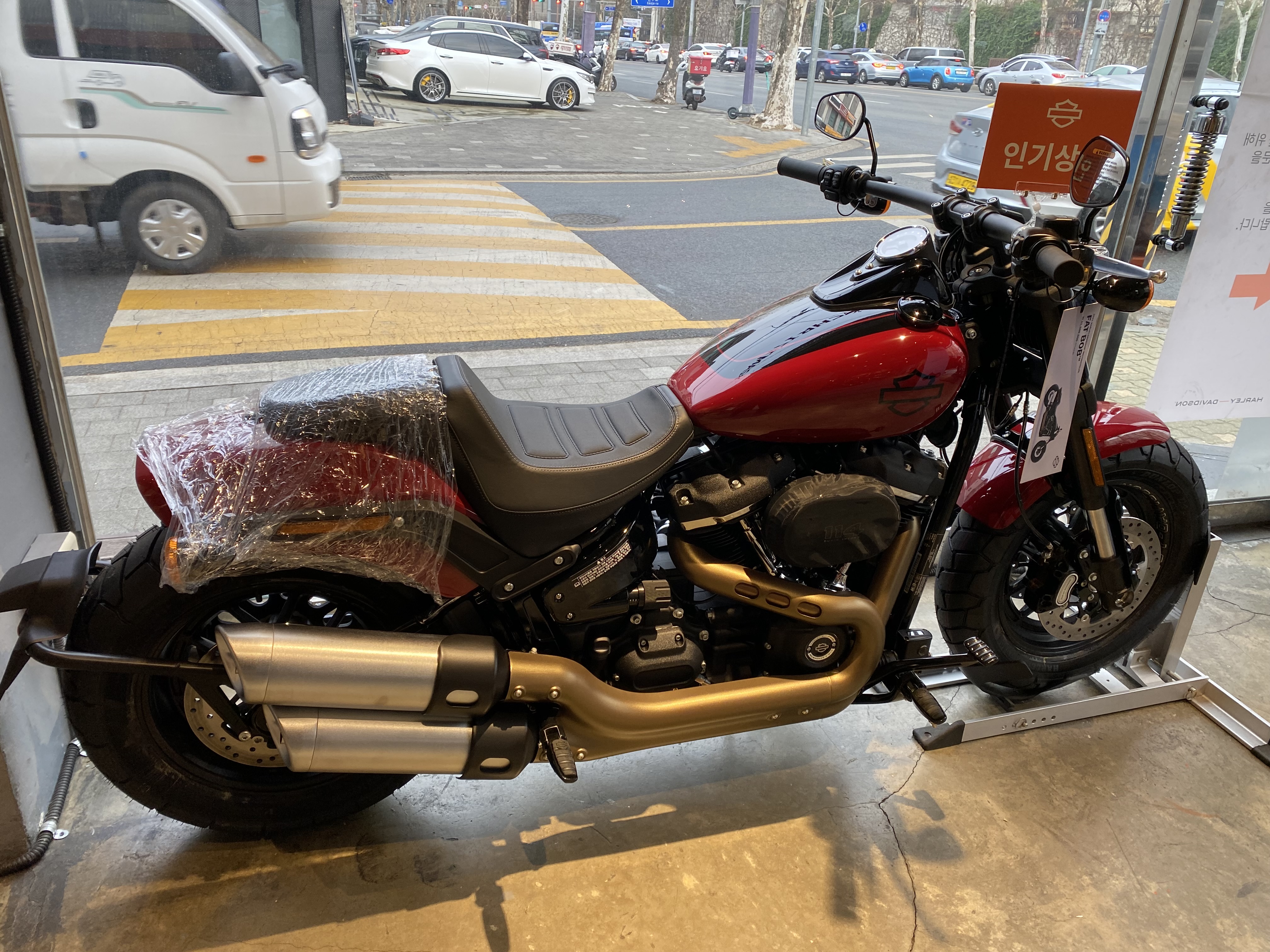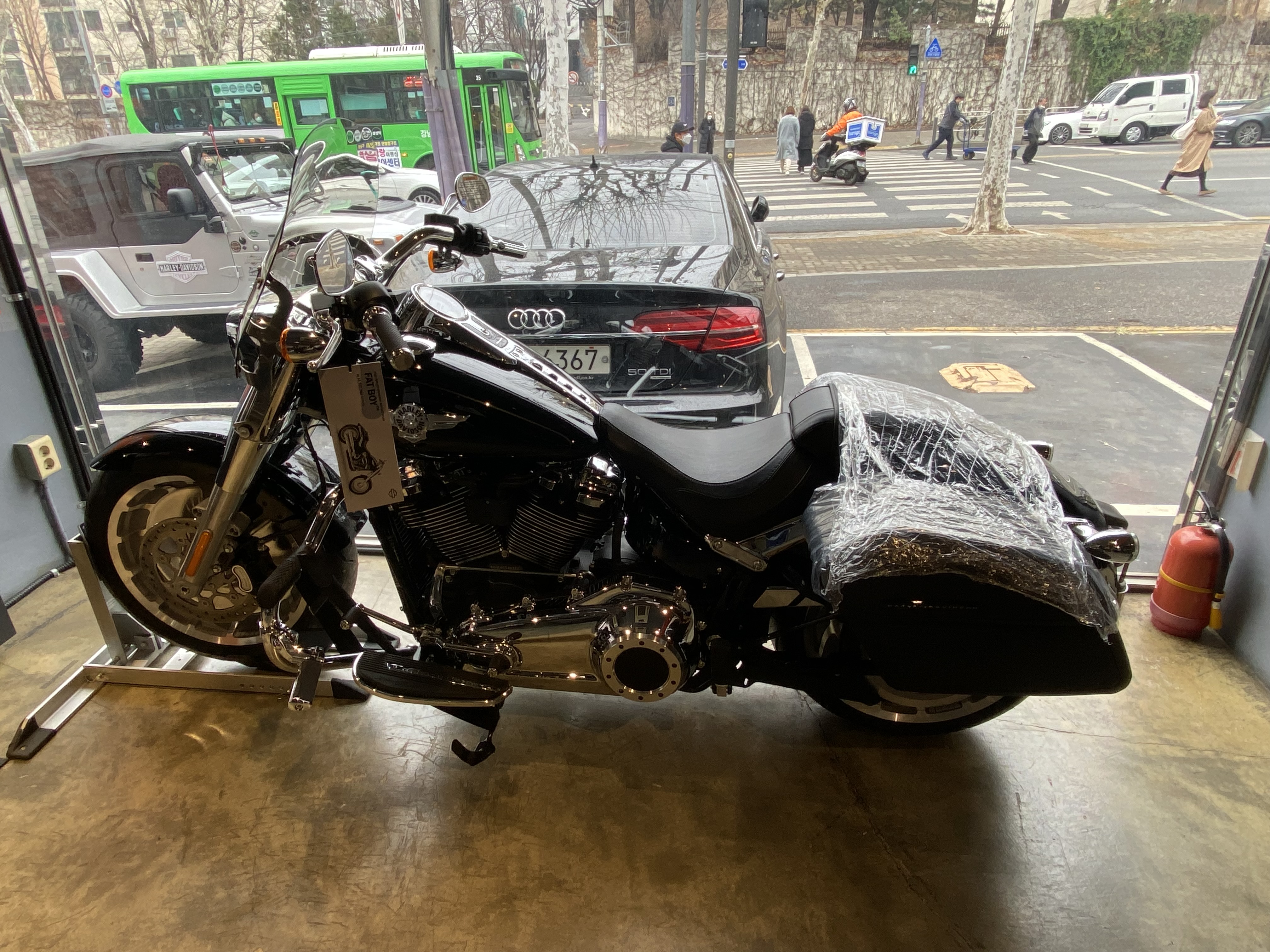 할리데이비슨 강남점에 갔다가 멋진 바이크 몇 대를 사진으로 담아 봤다. 먼저 아래는 팻보이를 강남점 에디션으로 시그니쳐 한 바이크.