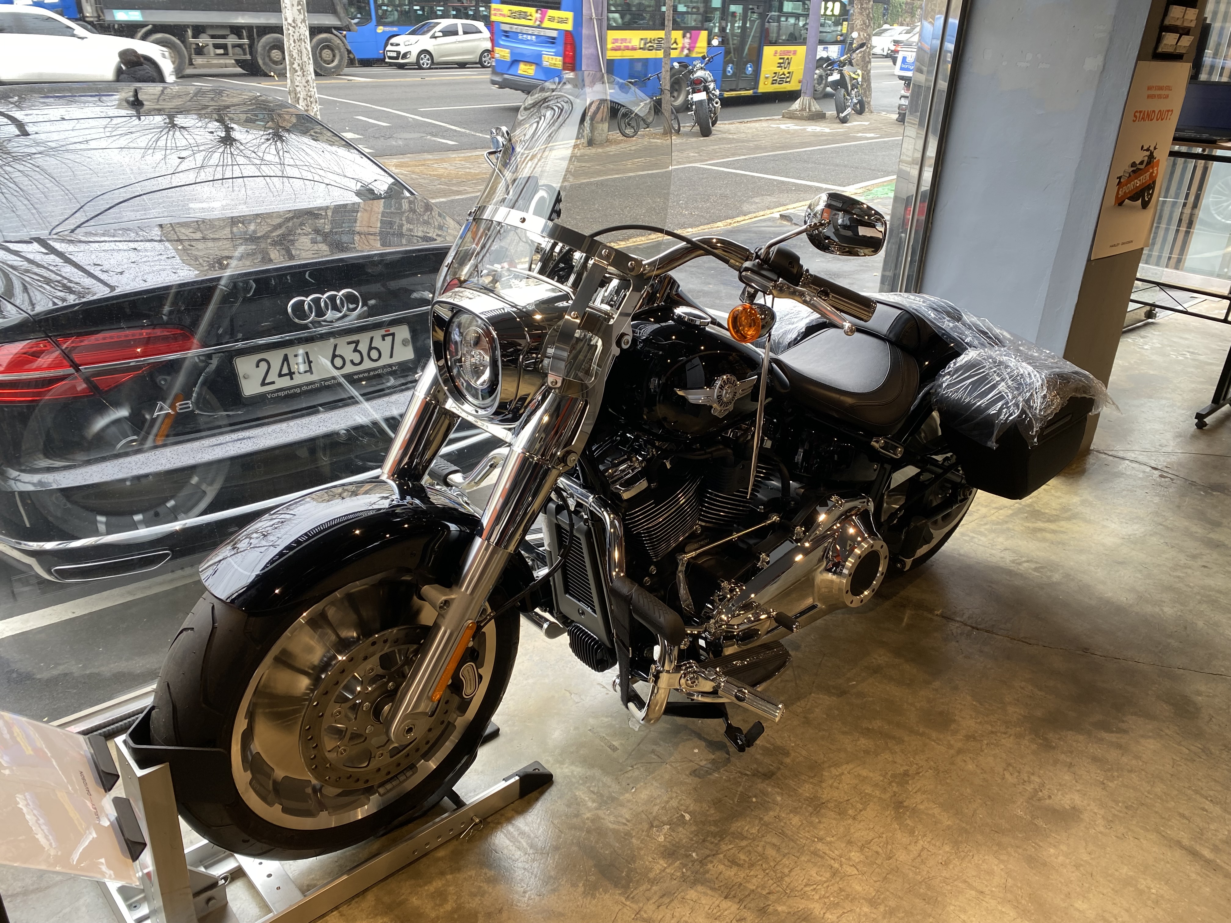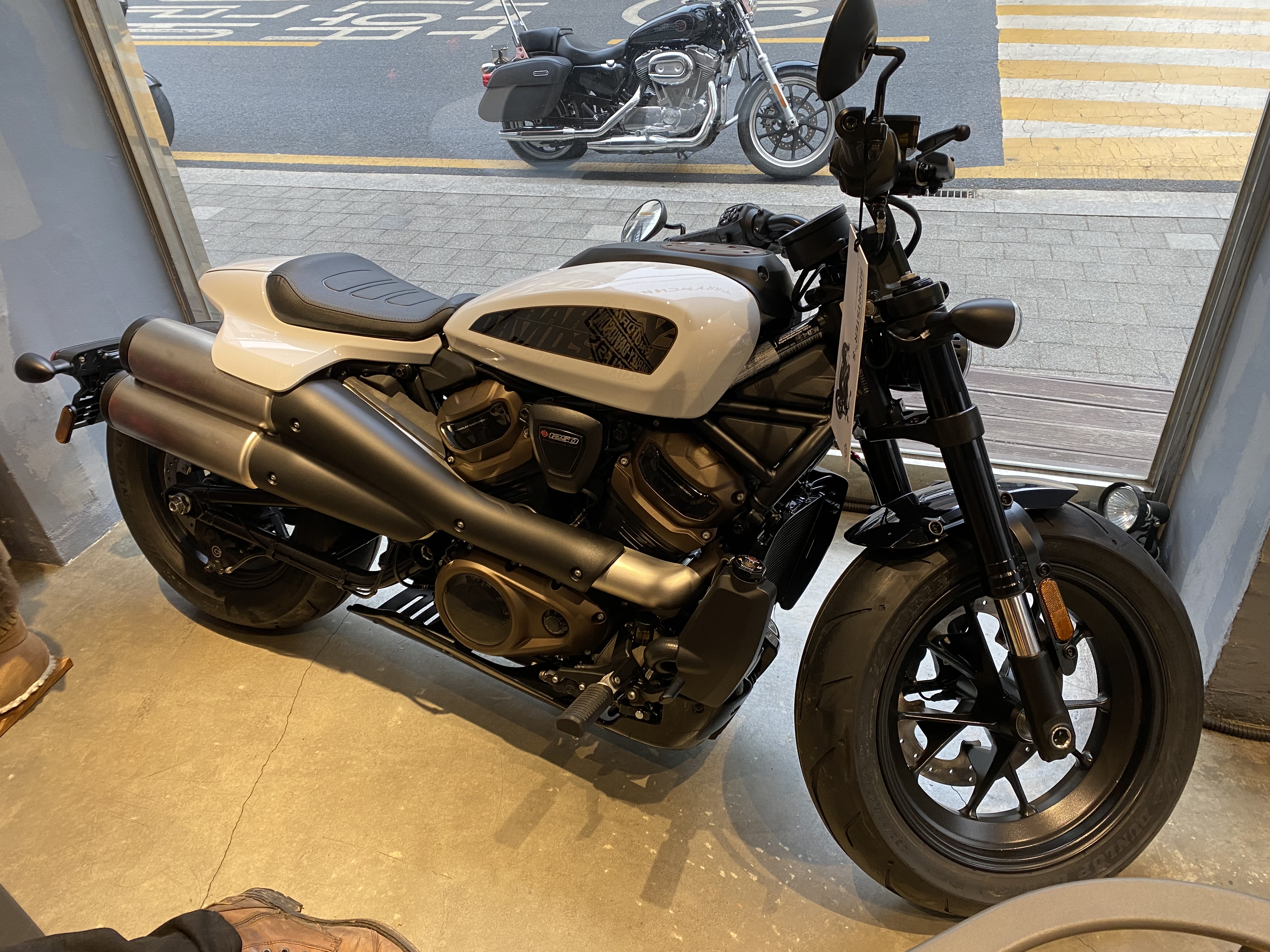 배기가스 규제로 기존 스포스터는 국내 수입이 불가하게 되었고 이에 할리에서 내놓은 신형 스포스터가 아래 '스포스터S' 유리창 밖에 보이는 바이크가 백랑의 바이크 ㅋㅋ