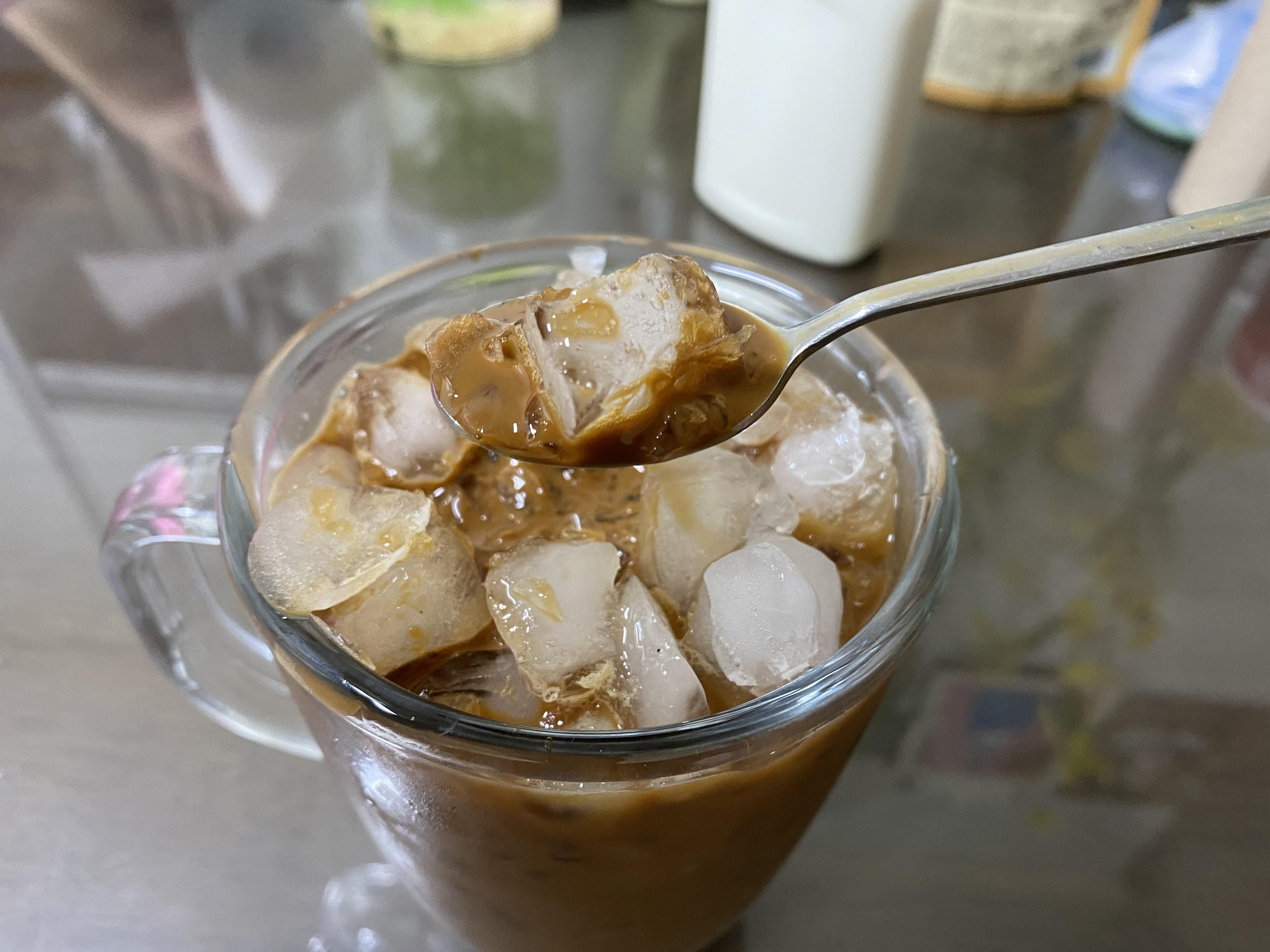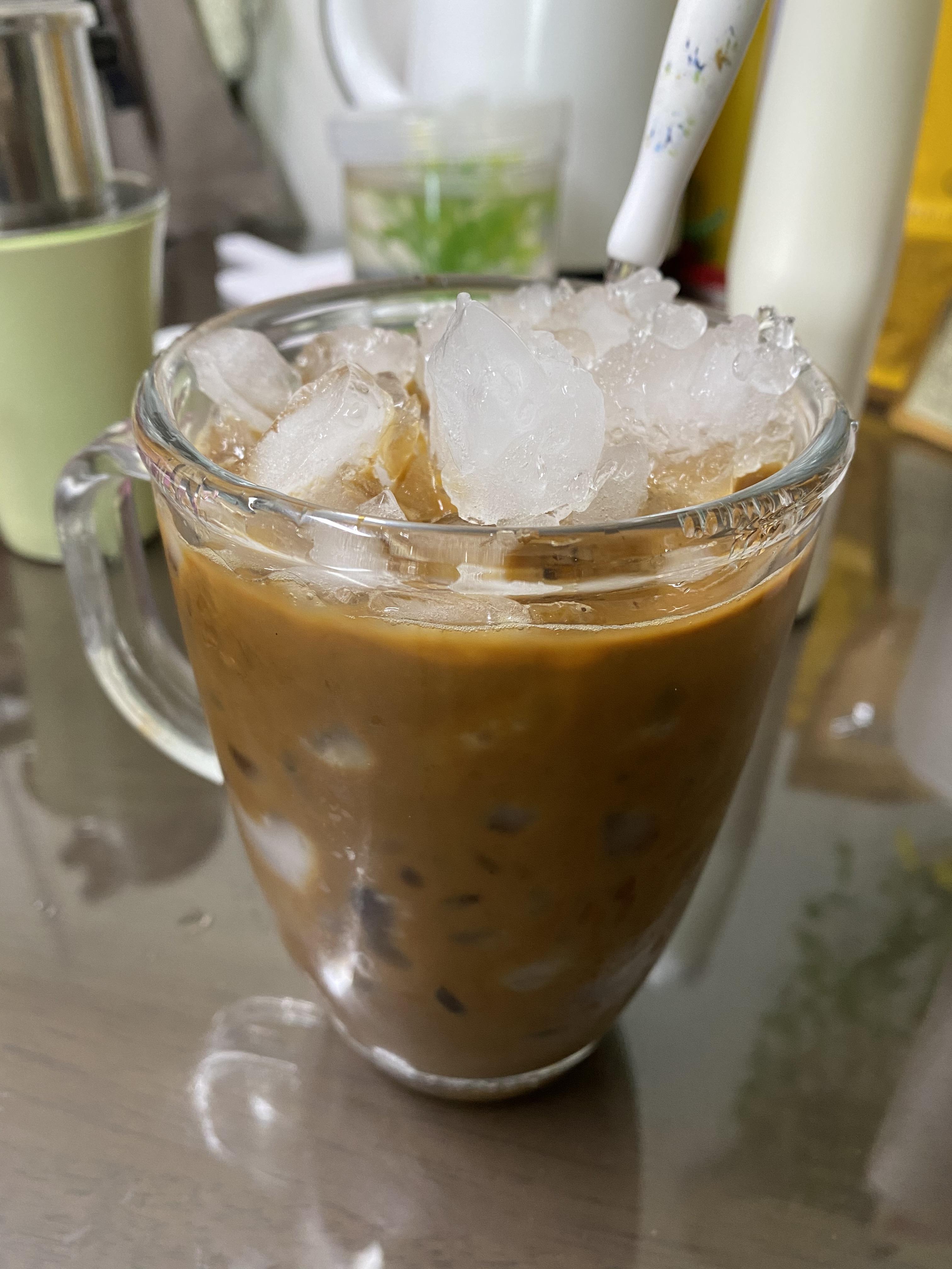 추출이 다 되면 연유와 잘 섞어서 얼음컵에 넣으면 카페 스어 다 완성.