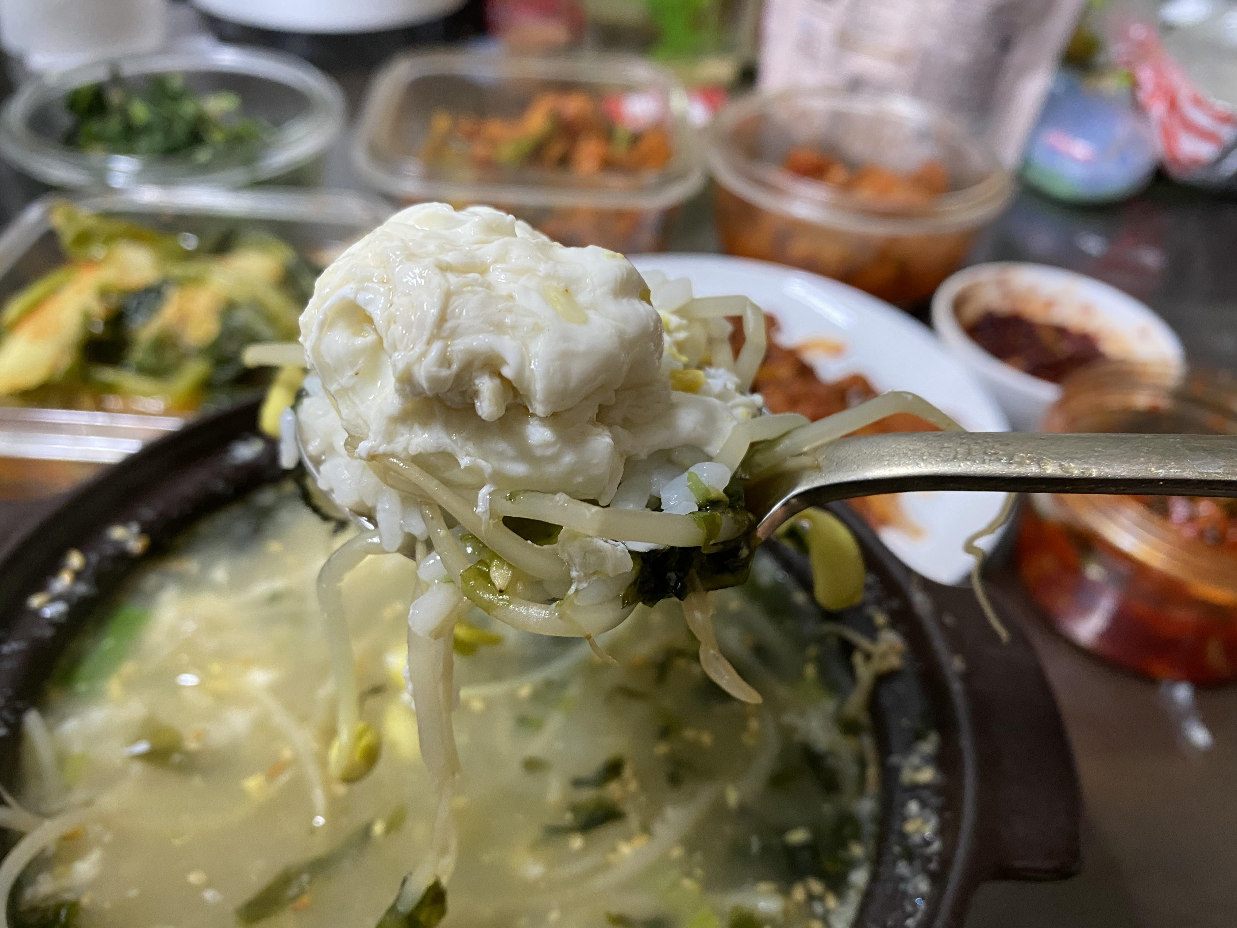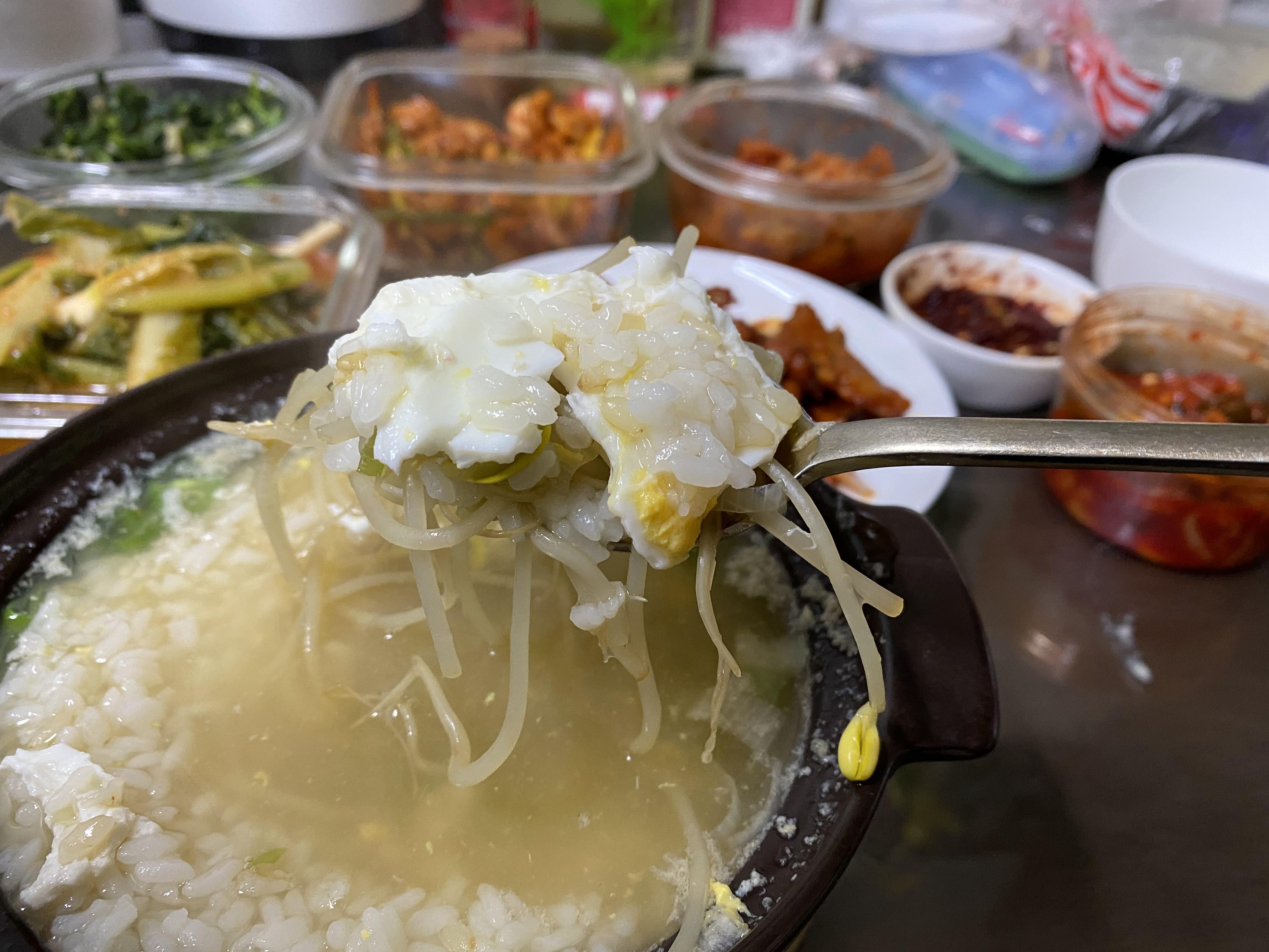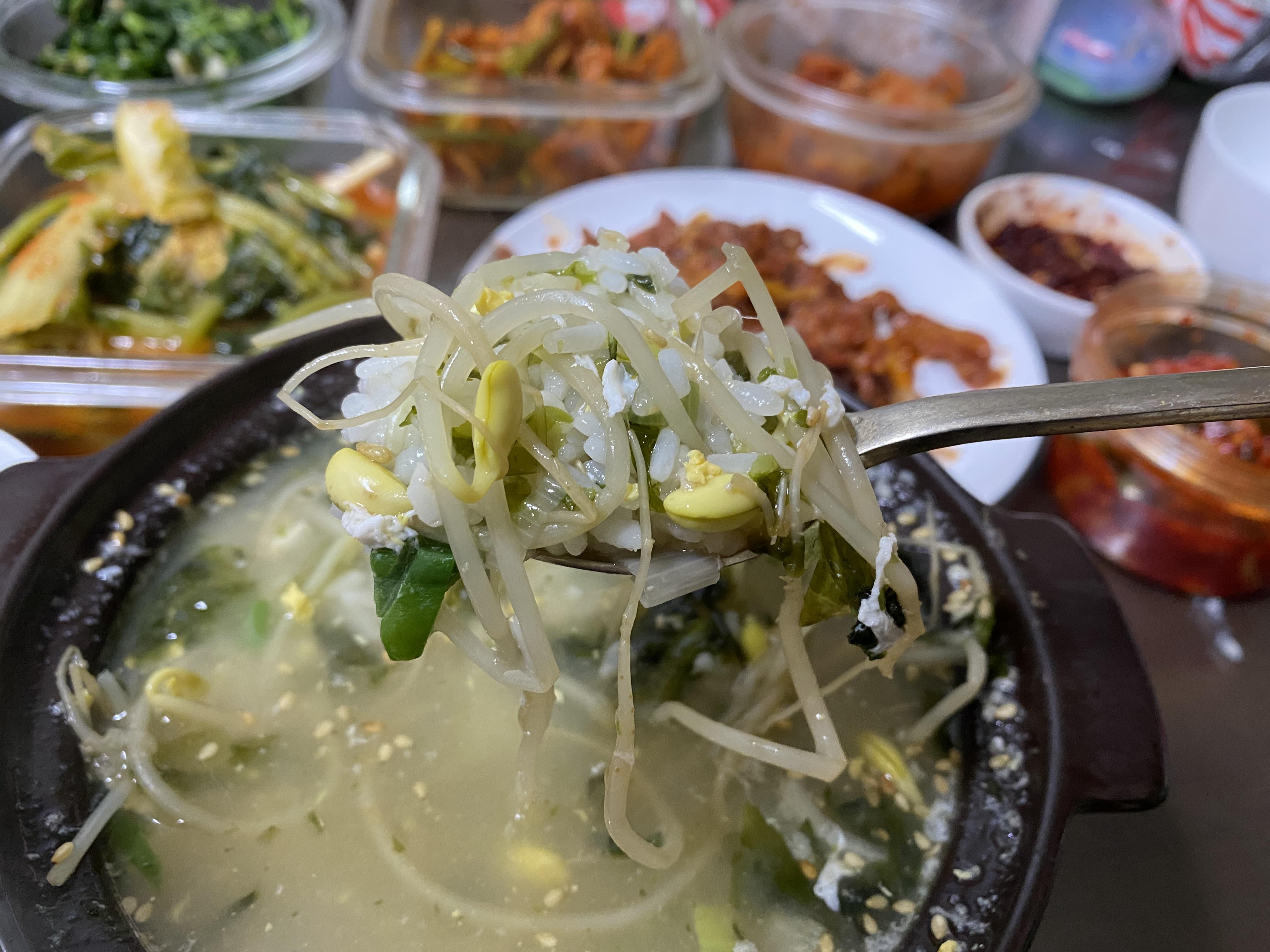 다시 국물을 우려낸 육수로 만든 콩나물 국밥은 감칠맛 나고 너무 맛있다.