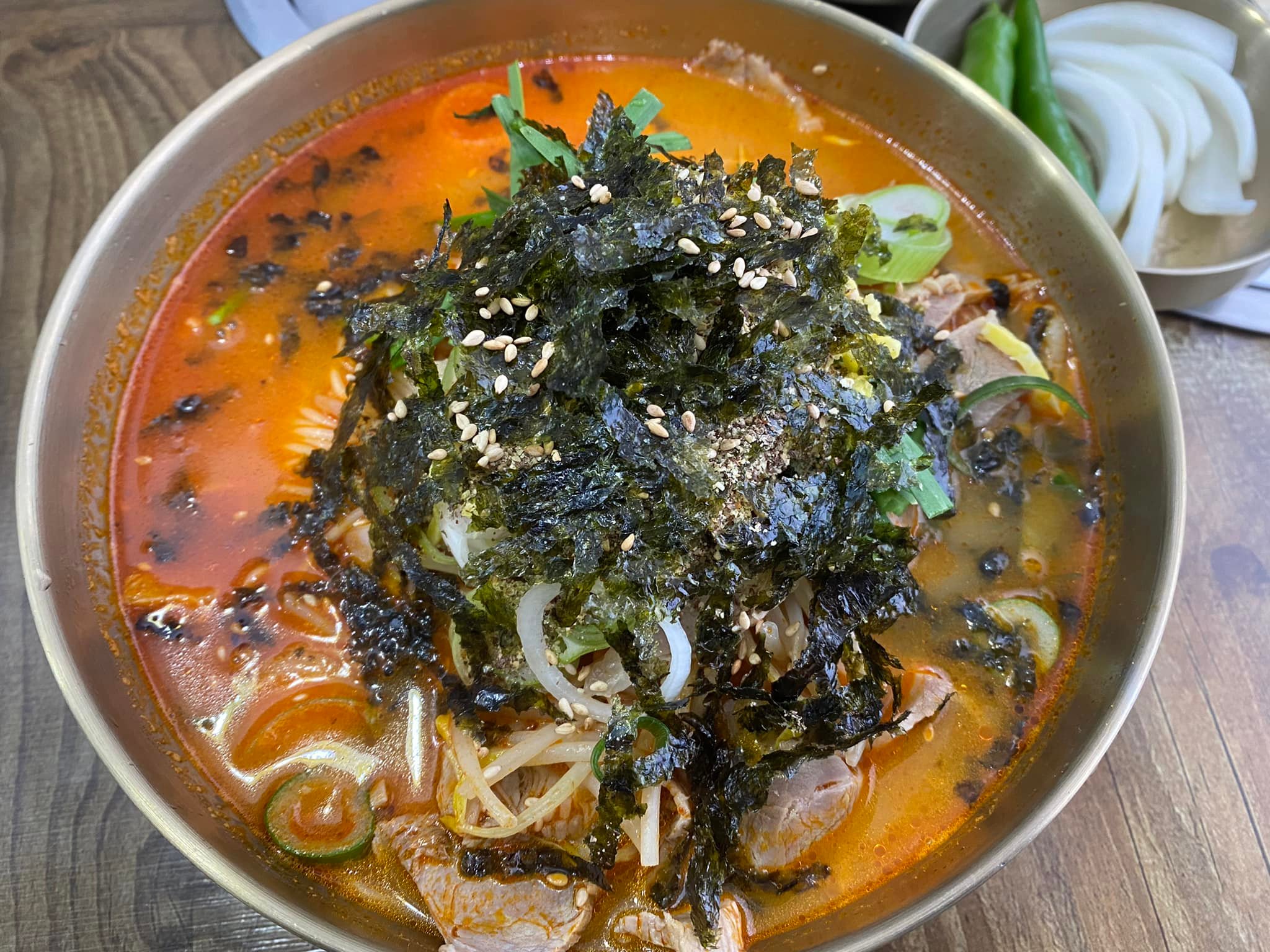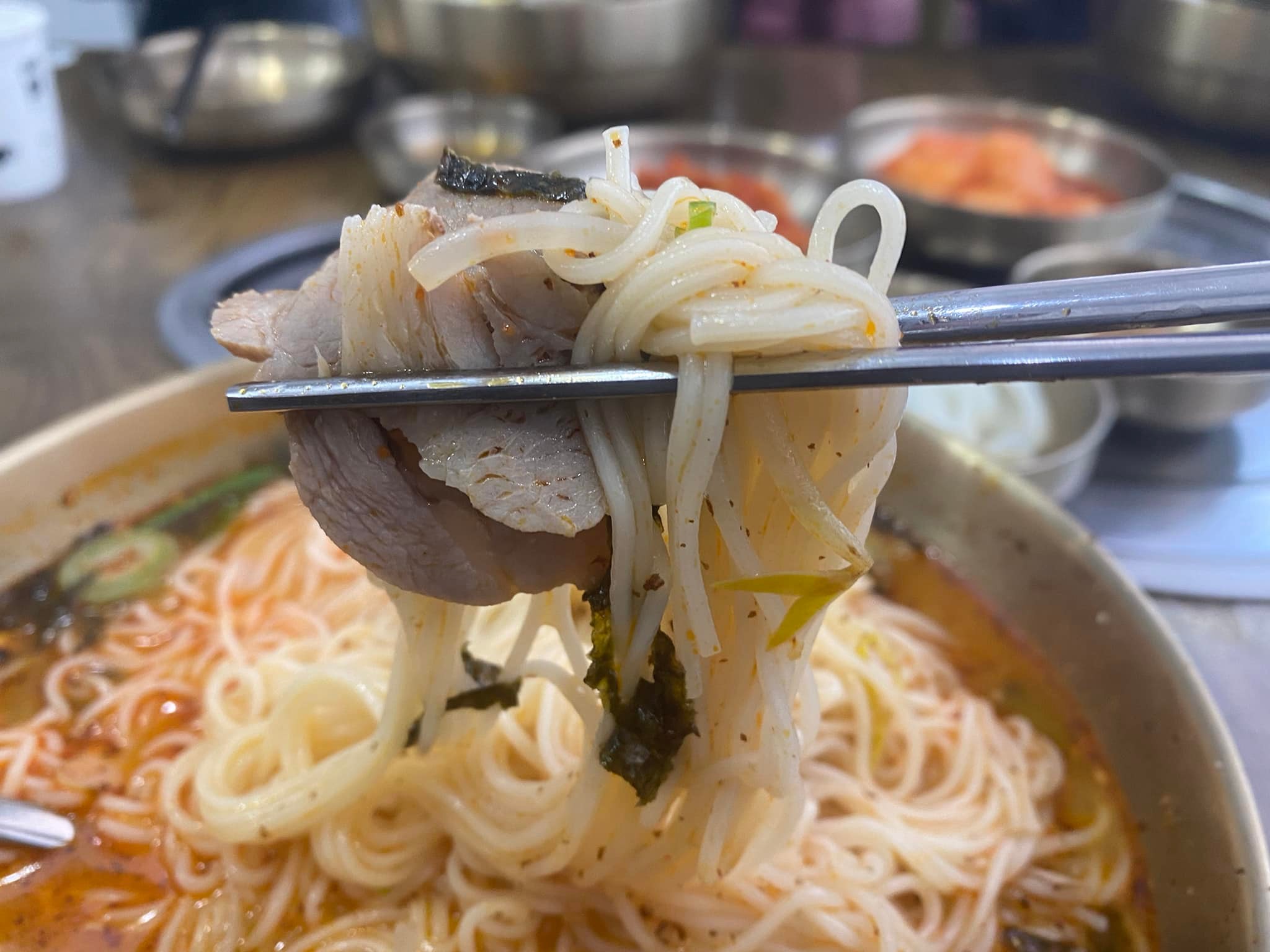아래는 전에 먹었던 얼큰 고기국수이다. 제주 고기국수 먹어본 멤버가 맛은 조금 틀리지만 맛이 괜찮다고 한다.