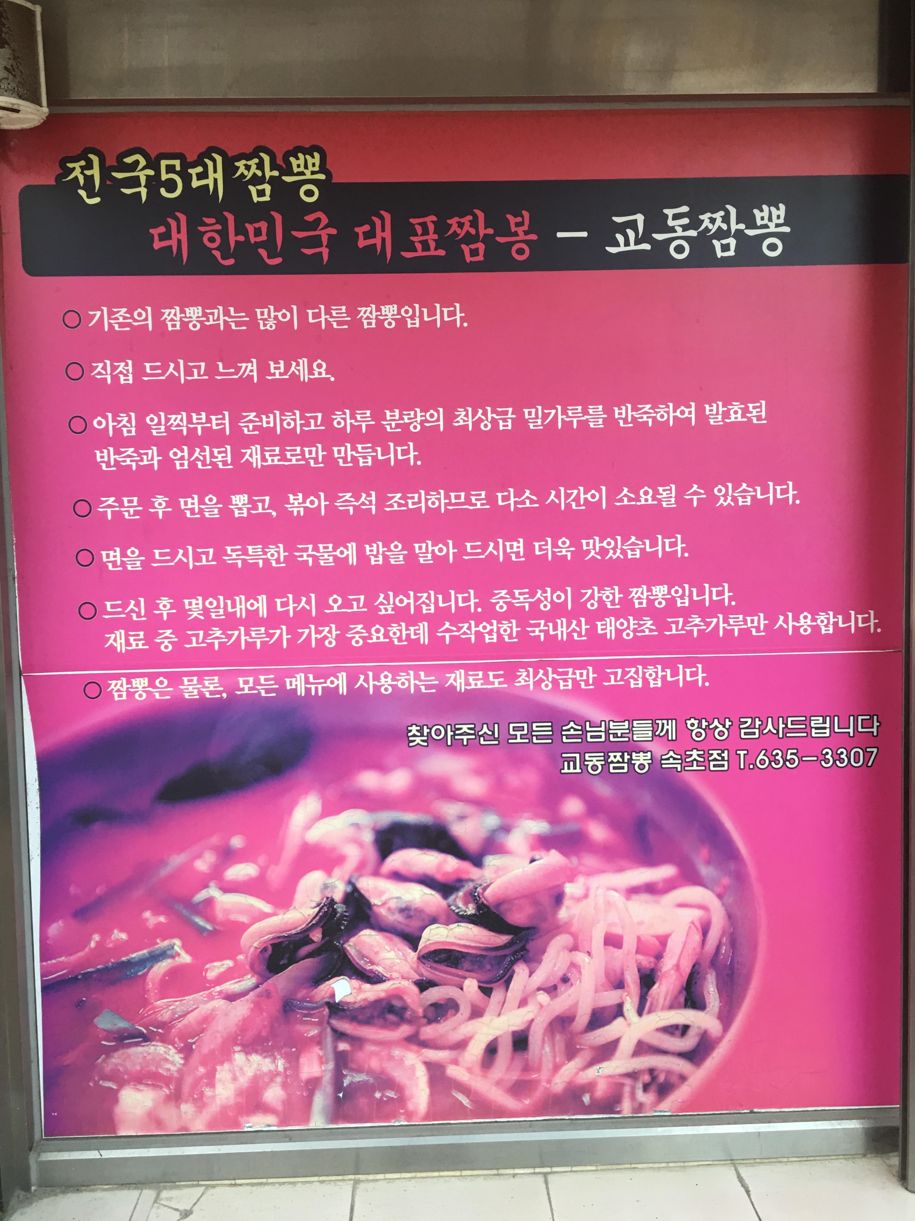 방송에서 가끔 맛집으로 나오던 교동짬뽕 속초점에 와봤다.