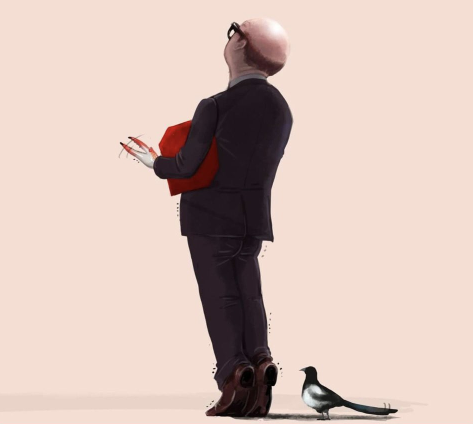 頭はハゲで、手はカニの鉗子の形で、足はカササギの足の形になっている。