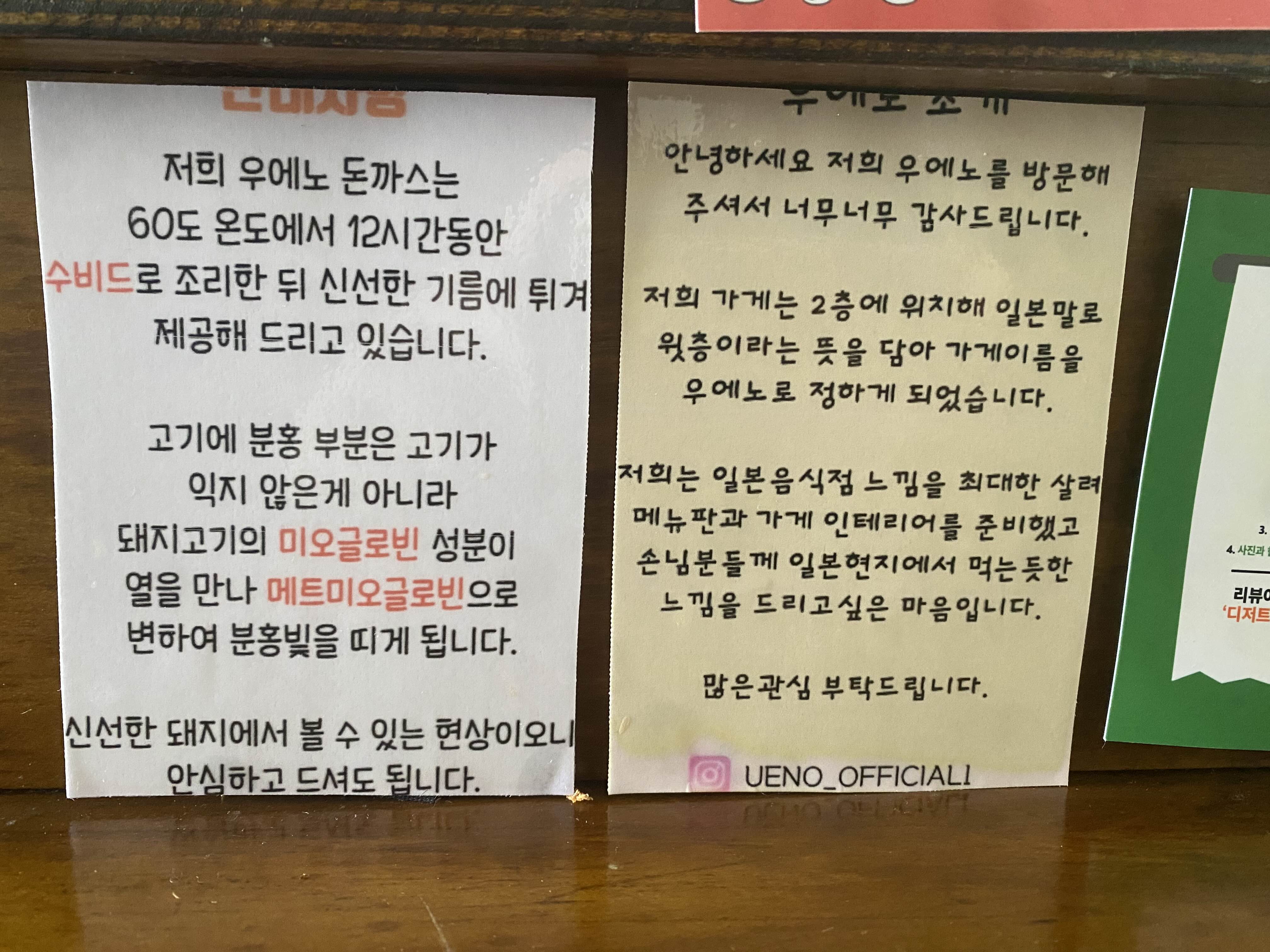 삼각지역 부근 새로 생긴 식당이 있어 함 가보았다. 이름이 우에노(うえの)인데 식당이 2층에 있어 ‘위’ 라는 뜻으로 우에노라고 지었다는데 전혀 납득이 가지 않는다. (上の라고 하면 ‘위의’ 라는 뜻이기 때문에…)