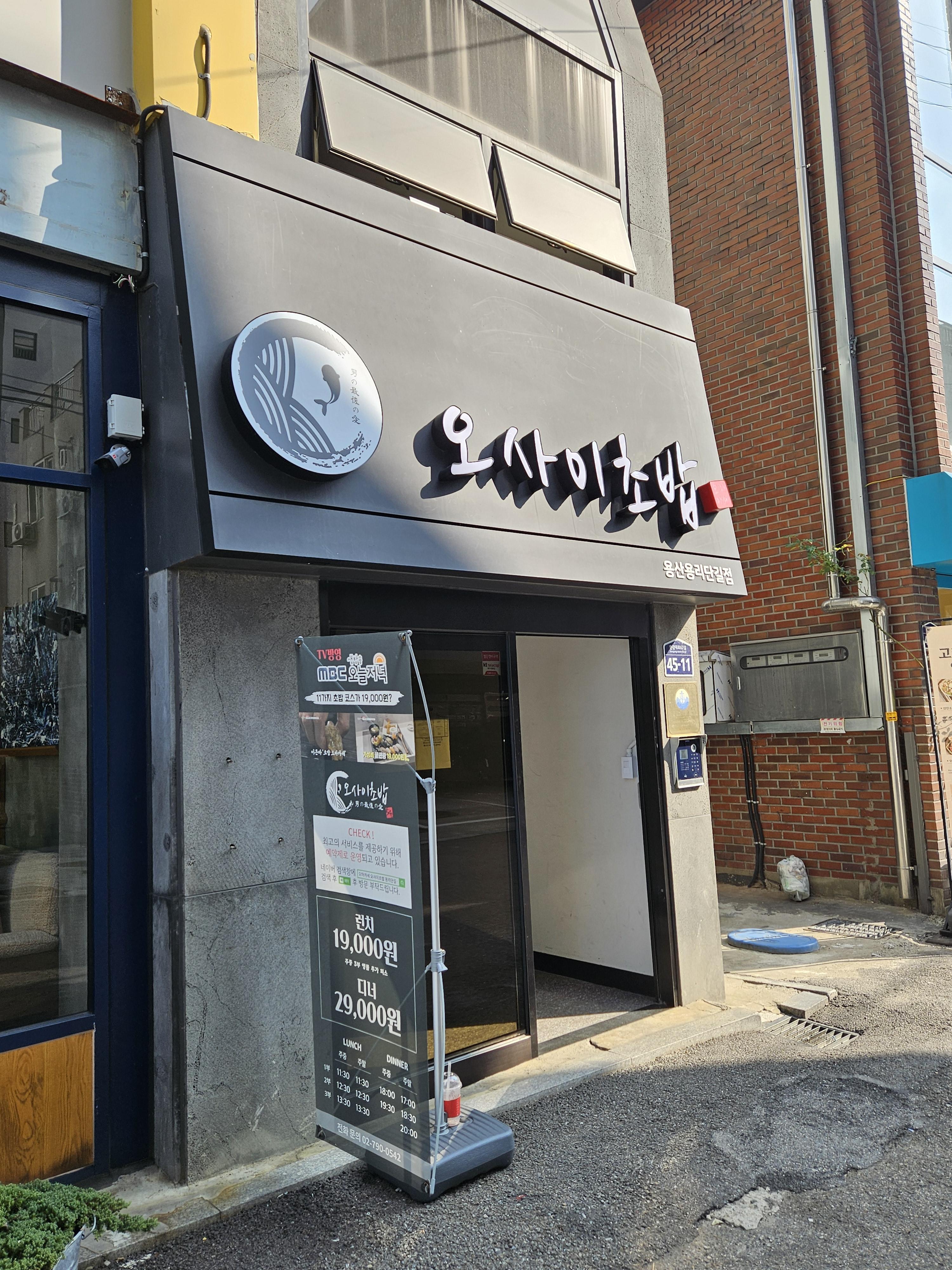 용산에 새로 생긴 오마카세 스시 전문점 오사이 초밥을 찾았다. 오사이는 오토코노 사이고노 아이(男の最後の愛) 의 줄임말로 번역하면 '남자의 마지막 사랑' 정도 되겠다. 숫자로는 542로 표현 가능하다. 점심 기준 19000원인데 초밥 10개와 식사로 우동, 후토마키. 그리고 디저트로 복분자차가 나왔다. 가성비로는 적당한 가격이겠지만 배가 부르지 않은 것은 또 엄연한 팩트. 여자라면 모를까 초밥 10개면 사실 5접시인데...