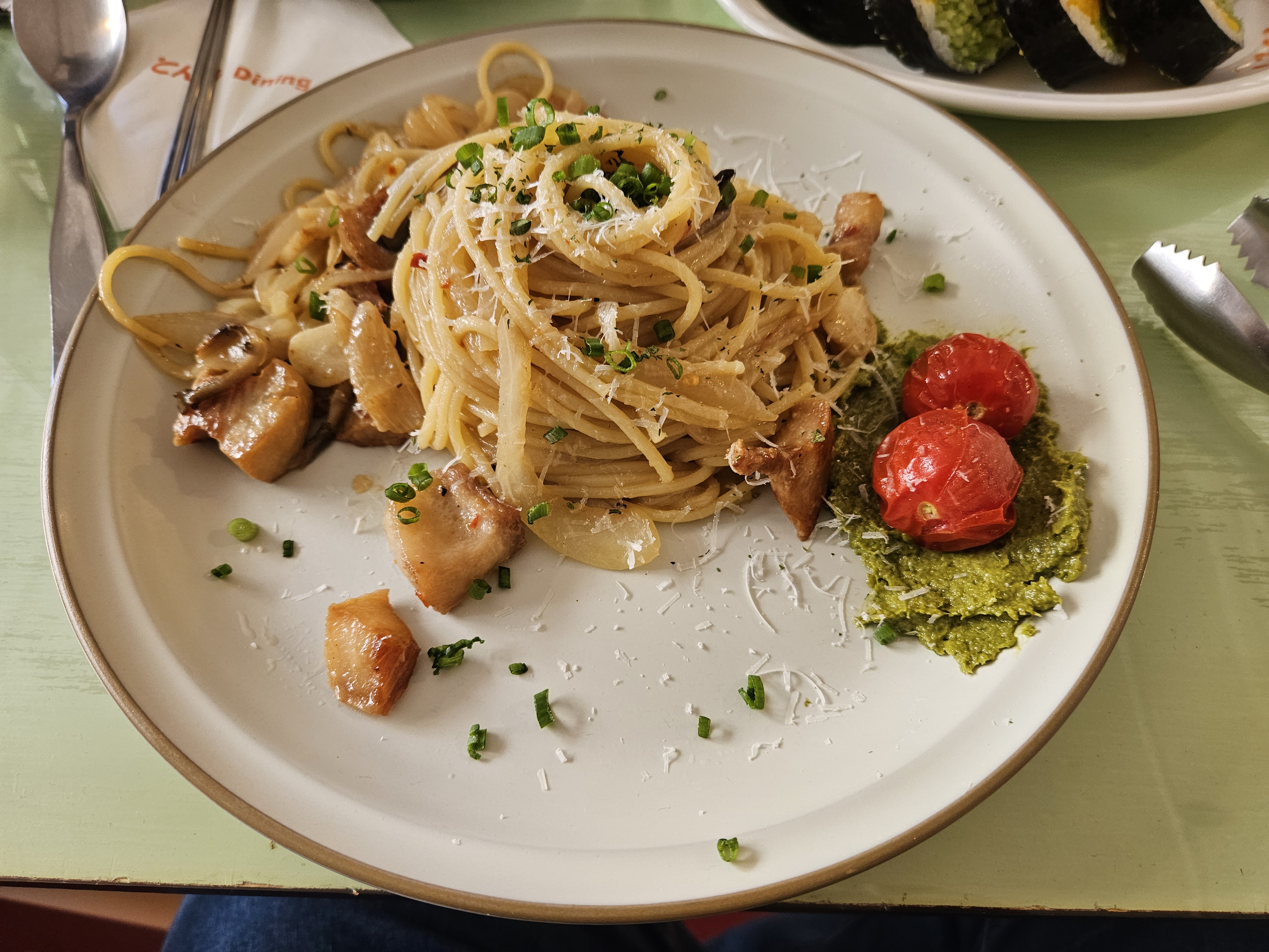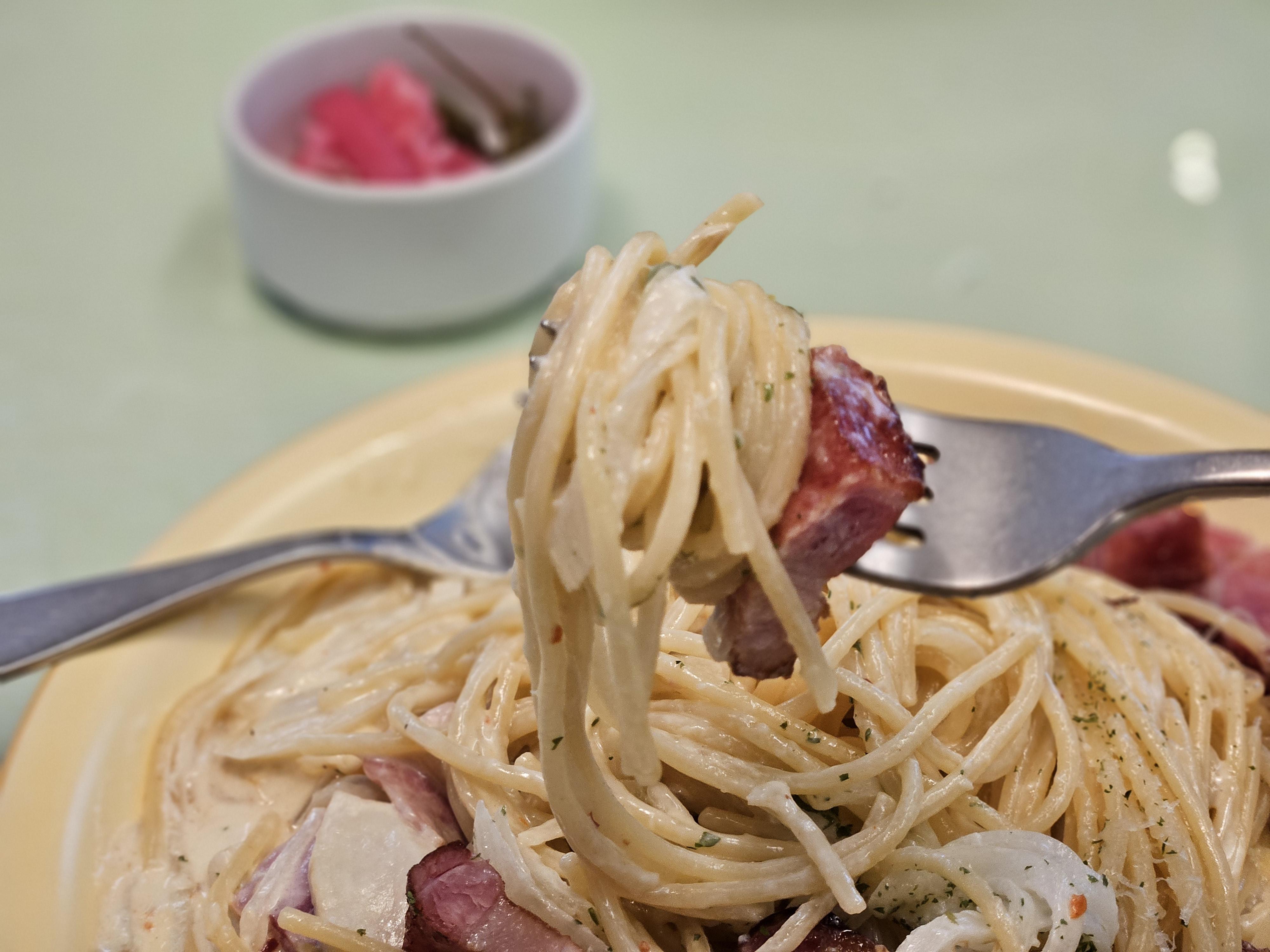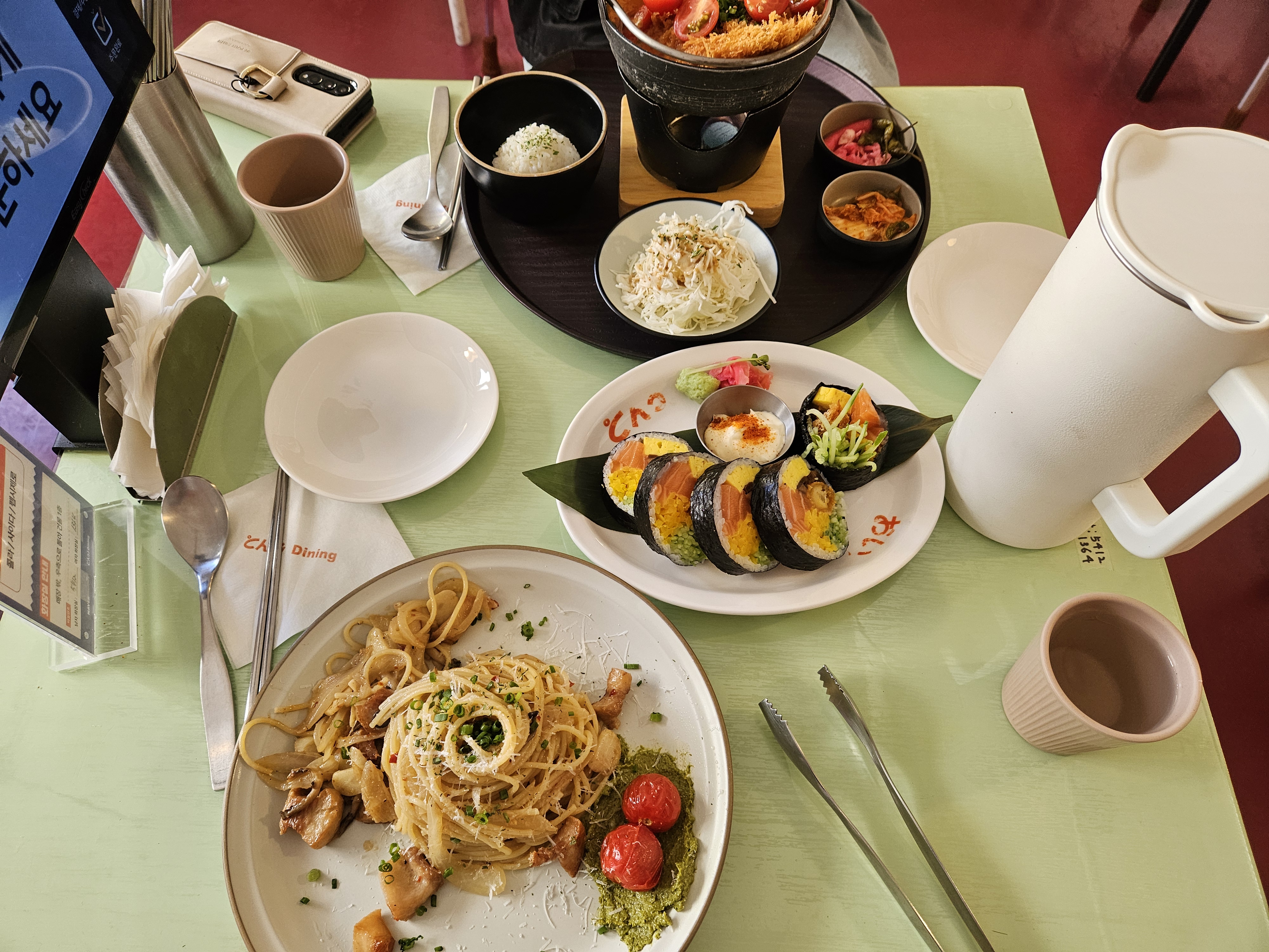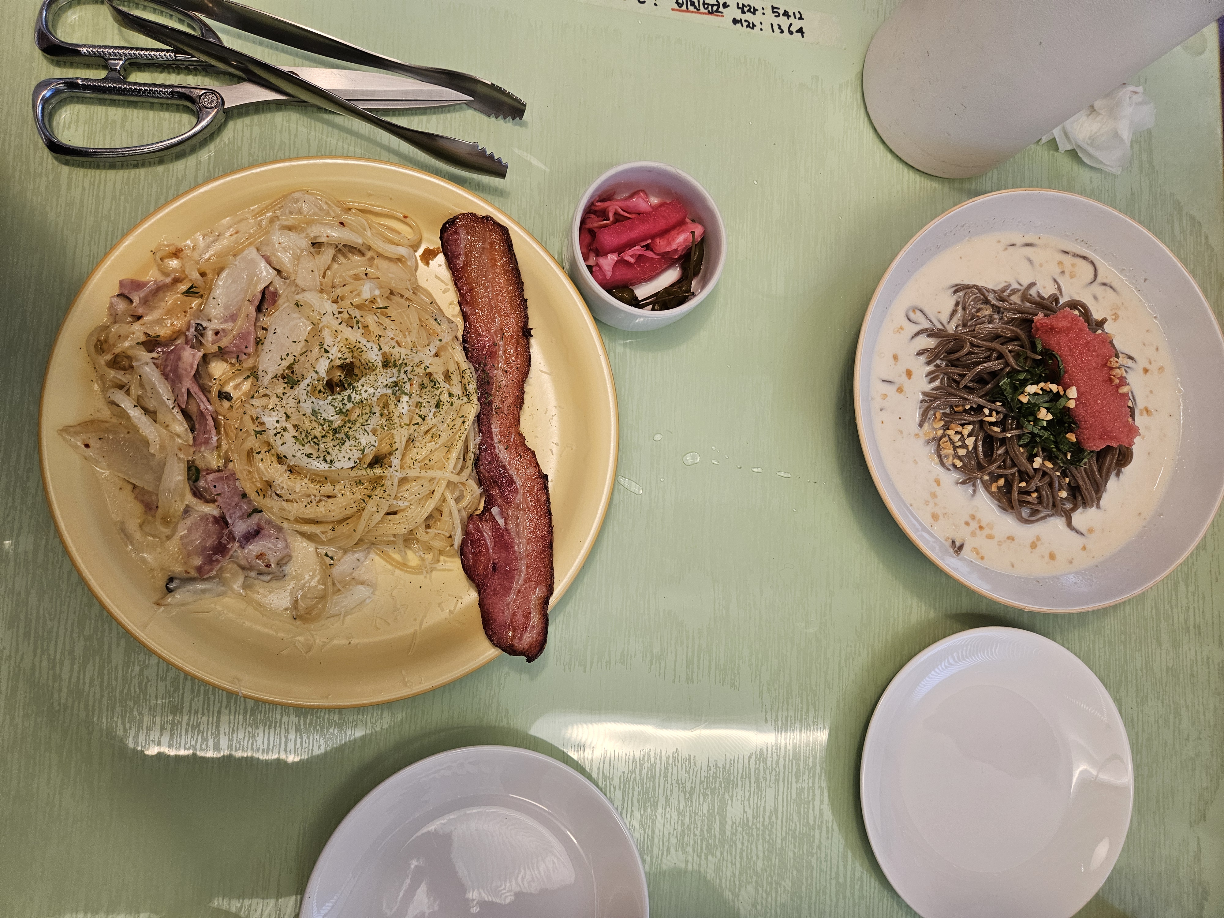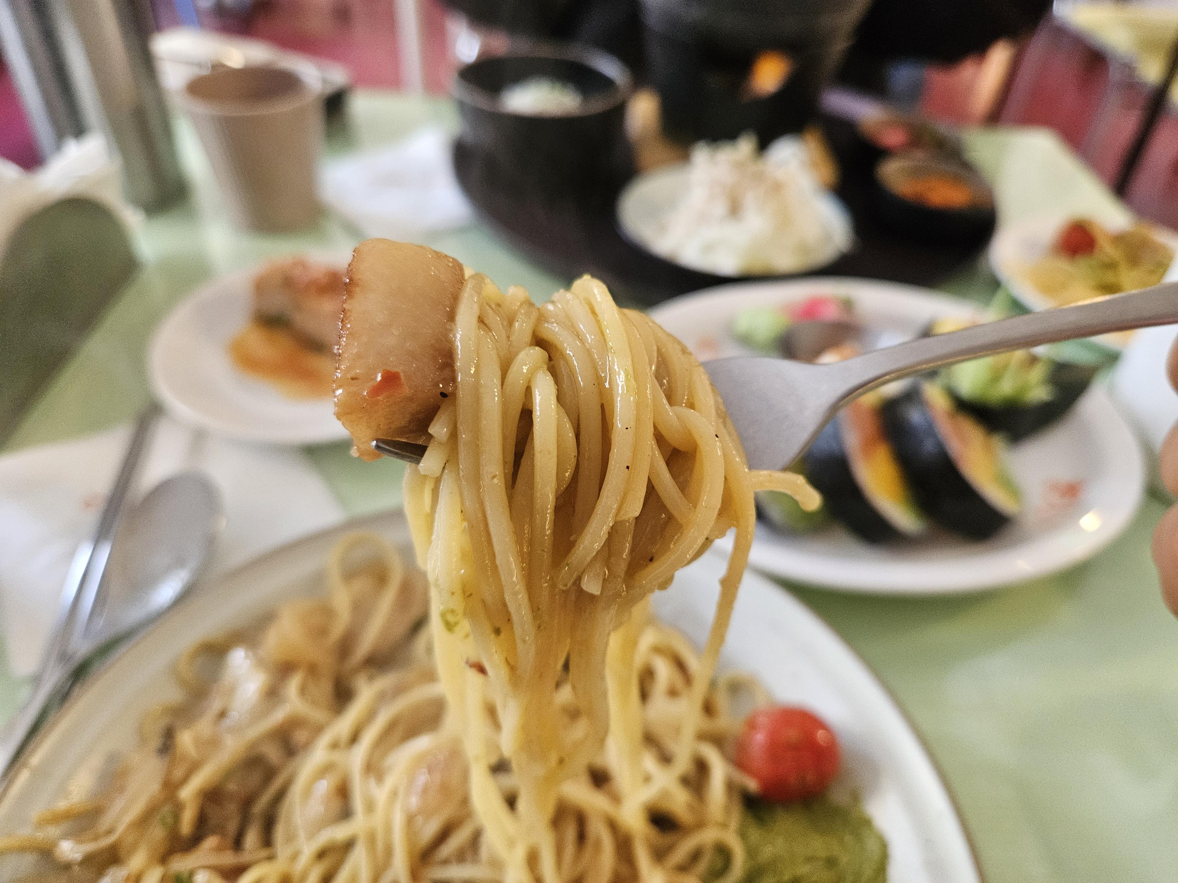 내가 주문했던 디쉬는 두툼베이컨크림파스타, 명이항정살오일파스타, 후토마키, 김치카츠나베 등이다. 다른건 모르겠는데 파스타는 가성비가 좋은 것 같다.